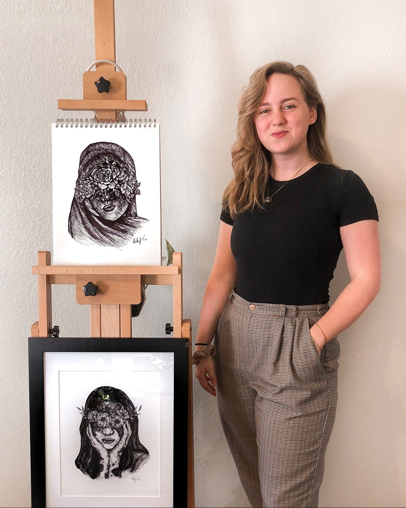 My art then developed into portraiture. I love exploring the individuality of people. After being asked frequently to draw specific people, I decided to begin doing commission work and sold my first commission for $5! I've since begun learning the real worth of art, and have had many opportunities to connect with clients on a personal level. I've done vibrant pet portraits, wedding portraits, memorial portraits, and so much more.
